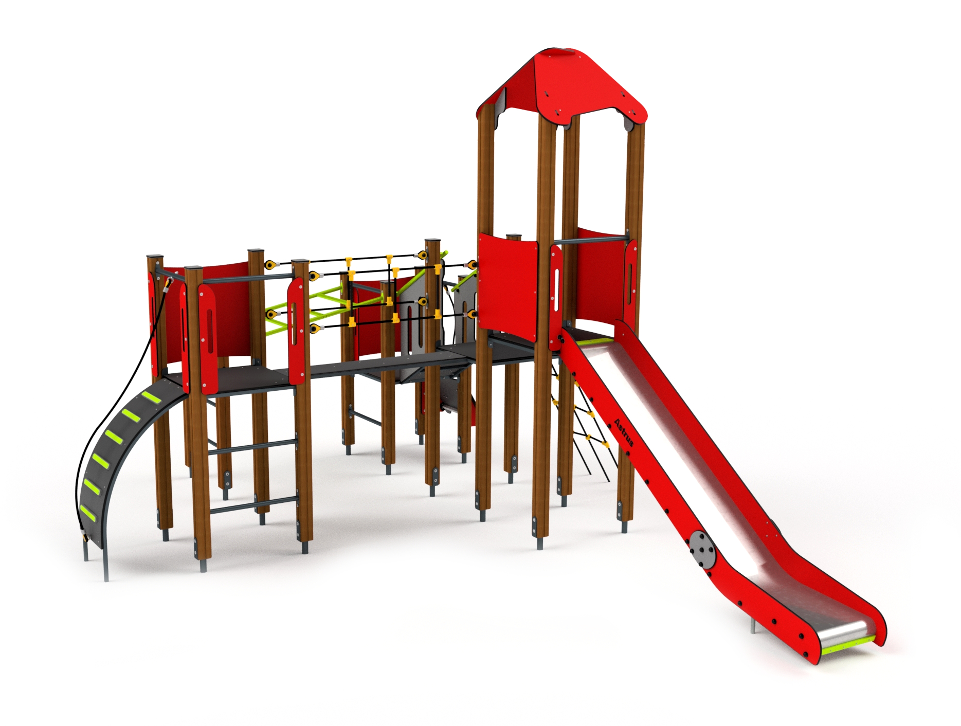 Mängulinnakus on 4 platvormi, liumägi, köisvõrk, sild, köiega ronimissein, köiega ramp, köitega sild, 3 redelit, rippredel.
