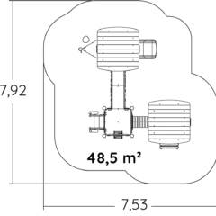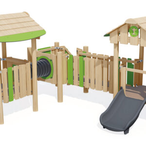Väikelastele mõeldud mängulinnakus on liumägi, mängumaja, tunnel ja sensoorne mängupaneel.