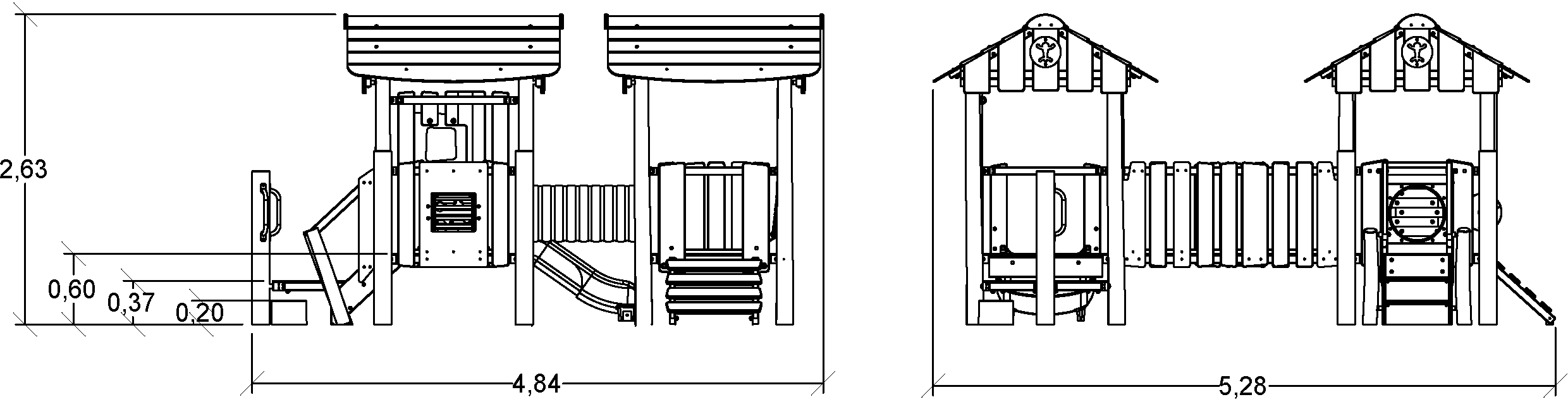 Väikelastele mõeldud mängulinnakus on liumägi, mängumaja, tunnel ja sensoorne mängupaneel.