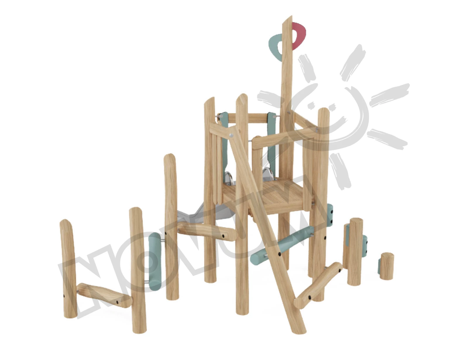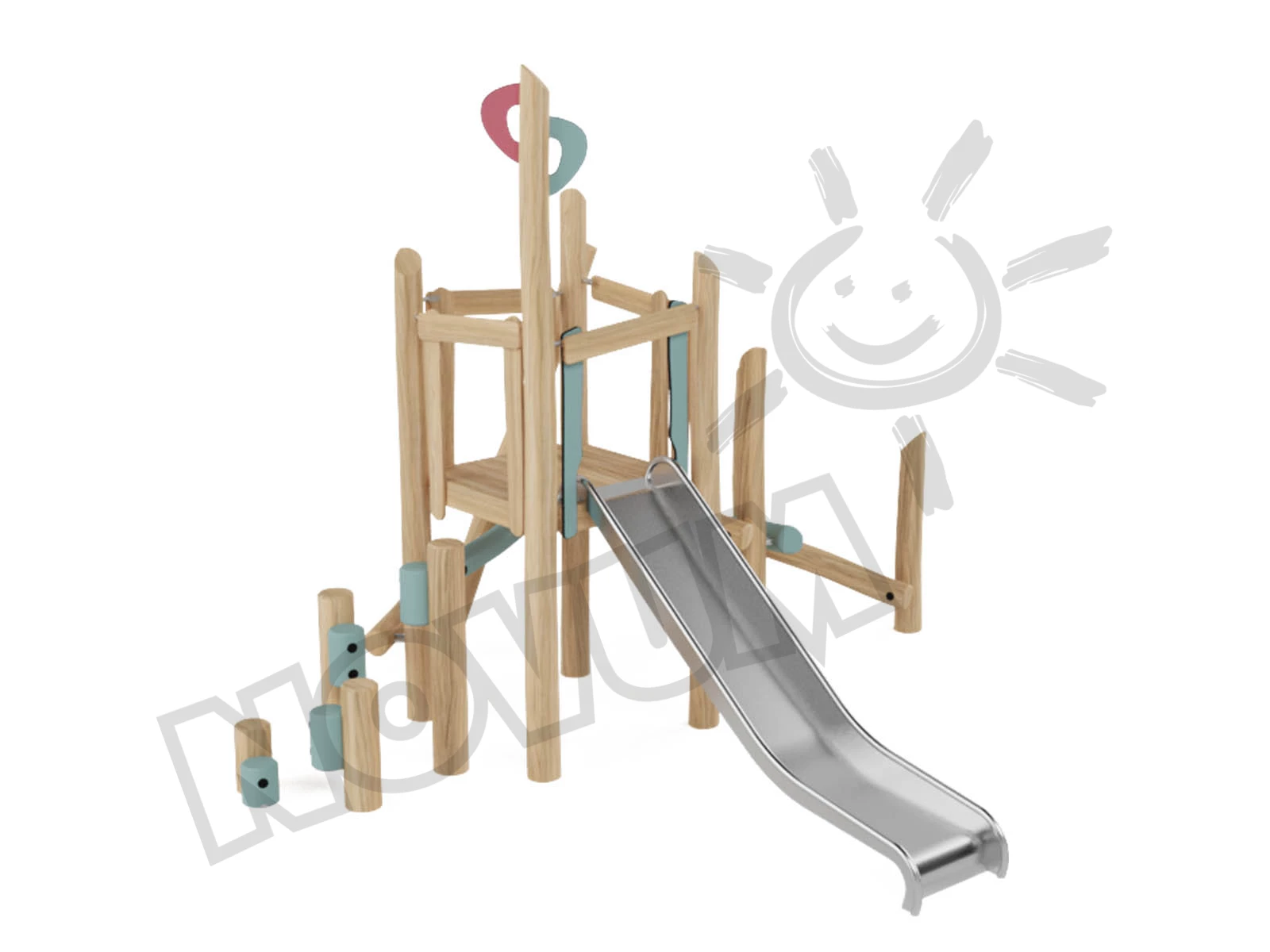 Dünaamiline komplekt eelkooliealistele (3+), mis julgustab aktiivset mängu. Keskpunktiks on tugev akaatsiapuust torn, millel on kolm erinevat sissepääsu, mis pakuvad erinevat raskusastet. Lapsed saavad valida marsruudi, mis on kohandatud nende oskustele – alates lihtsamast ronimisest kuni keerulisemate lähenemisteni.