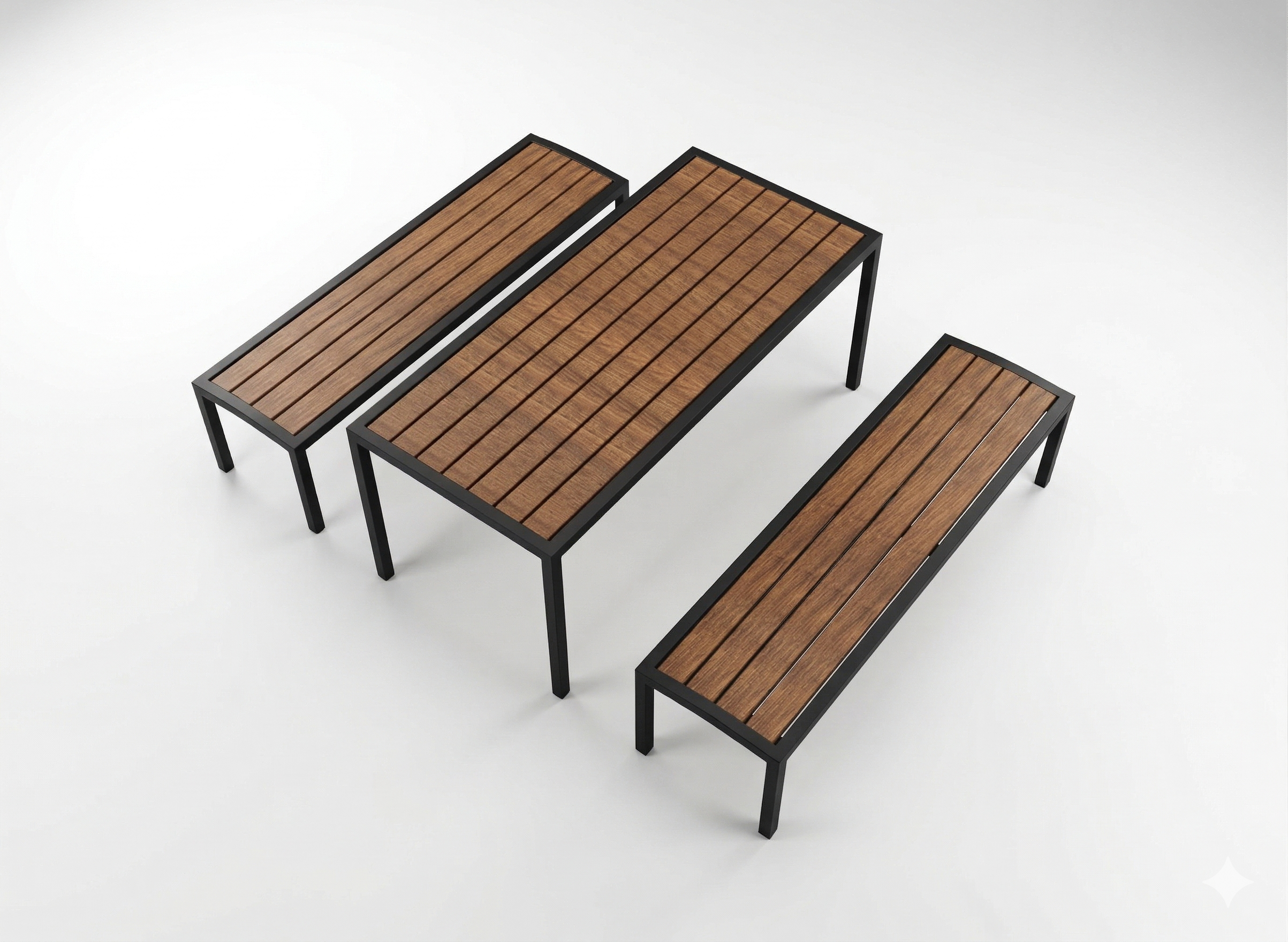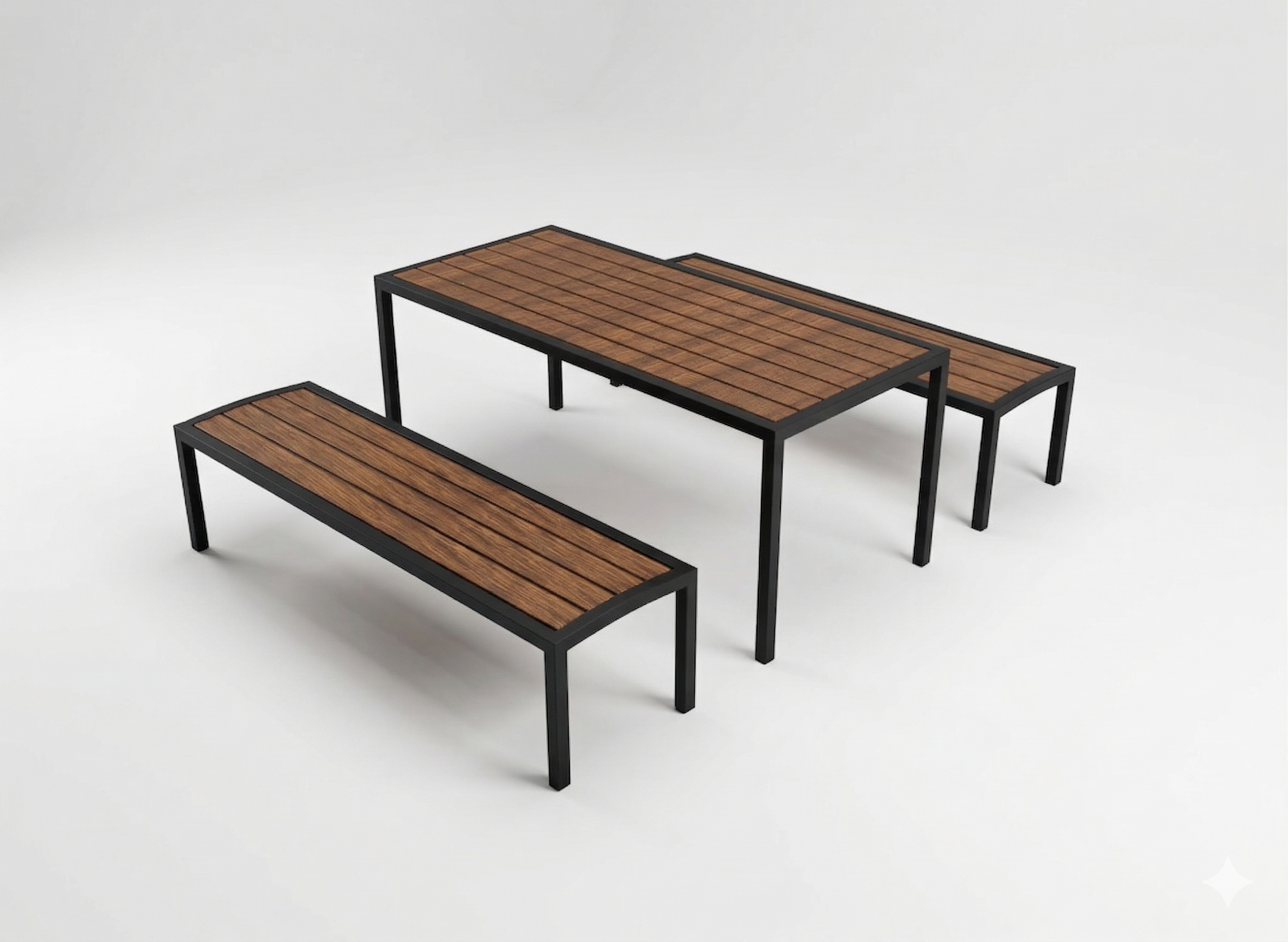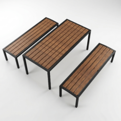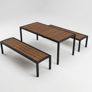Komplektis on laud ja 2 seljatoeta pinki.