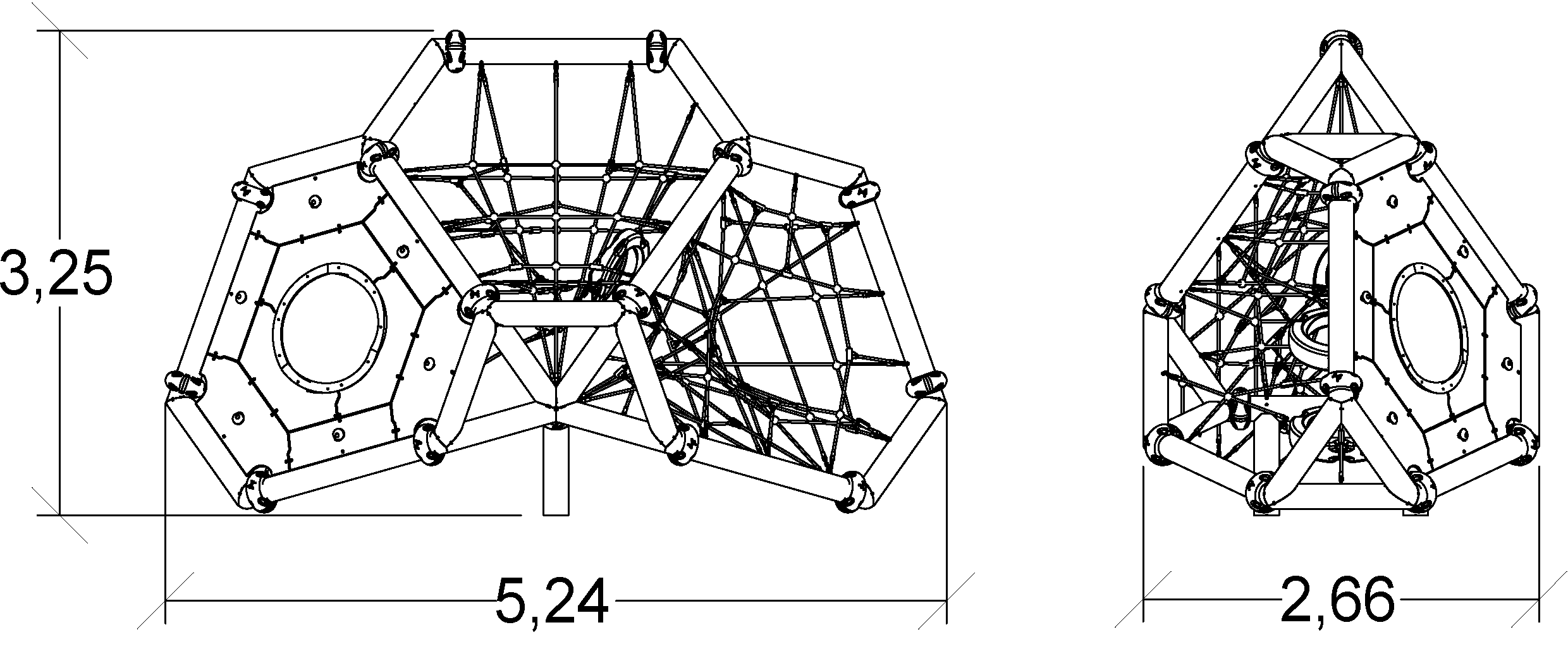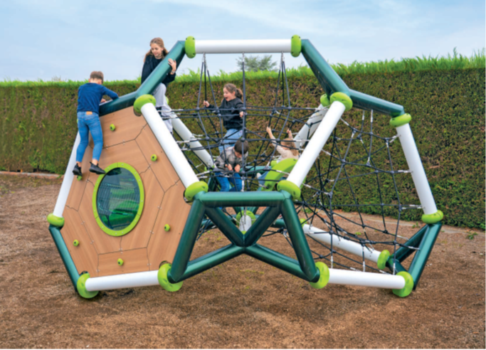 Koosnedes originaalsetest geomeetrilistest moodulitest, mis sobivad kokku nagu hiiglaslikud maamärgid, loovad need struktuurid 3D-mänguruumi, kus eesmärk on kõrgel kohal. Võrkude, köistunnelite, rippuvate poide ja ronimispaneelide abil peavad lapsed ühendama tasakaalu ja väleduse, et edasi liikuda, kinni hoida ja tippu jõuda. See kogemus paneb proovile motoorsed oskused, julguse ja enesekontrolli, luues samal ajal sõbraliku õhkkonna võistlemiseks ja sõpradega mängimiseks.