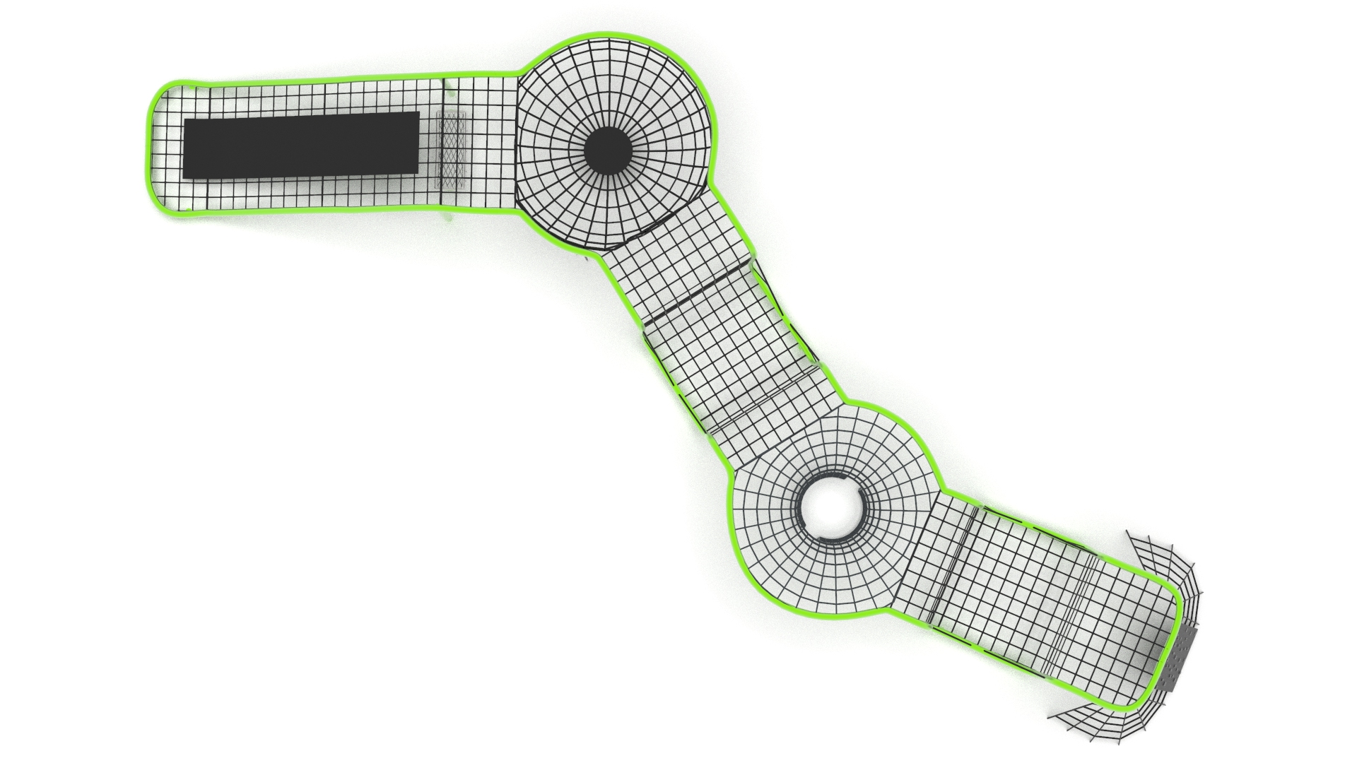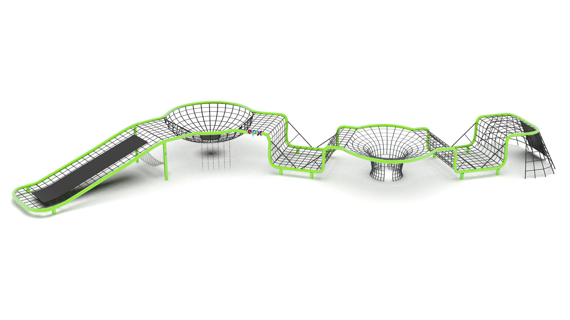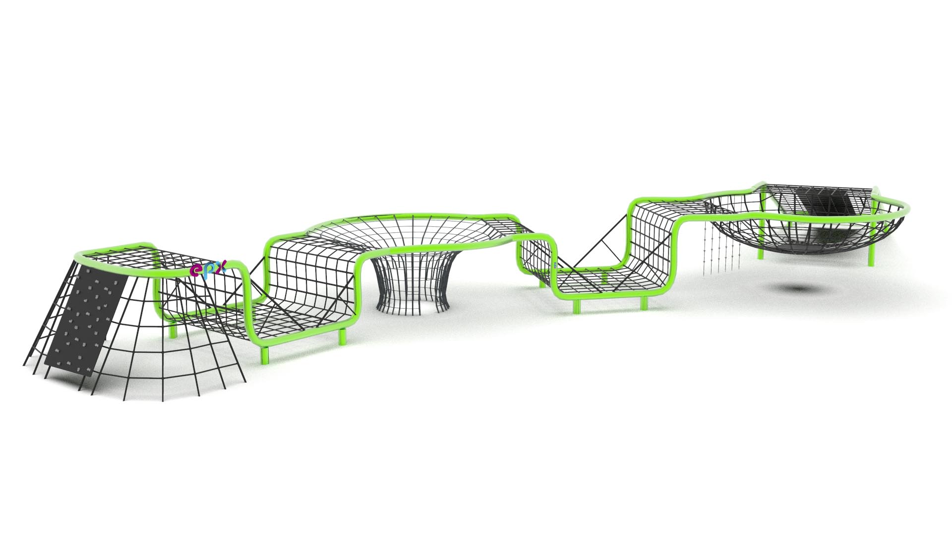 Pulbervärvitud teraskonstruktsioon, trosssisuga 16mm PP köied ja võrgud, mittelibedad platvormid. alumiiniumühendused.